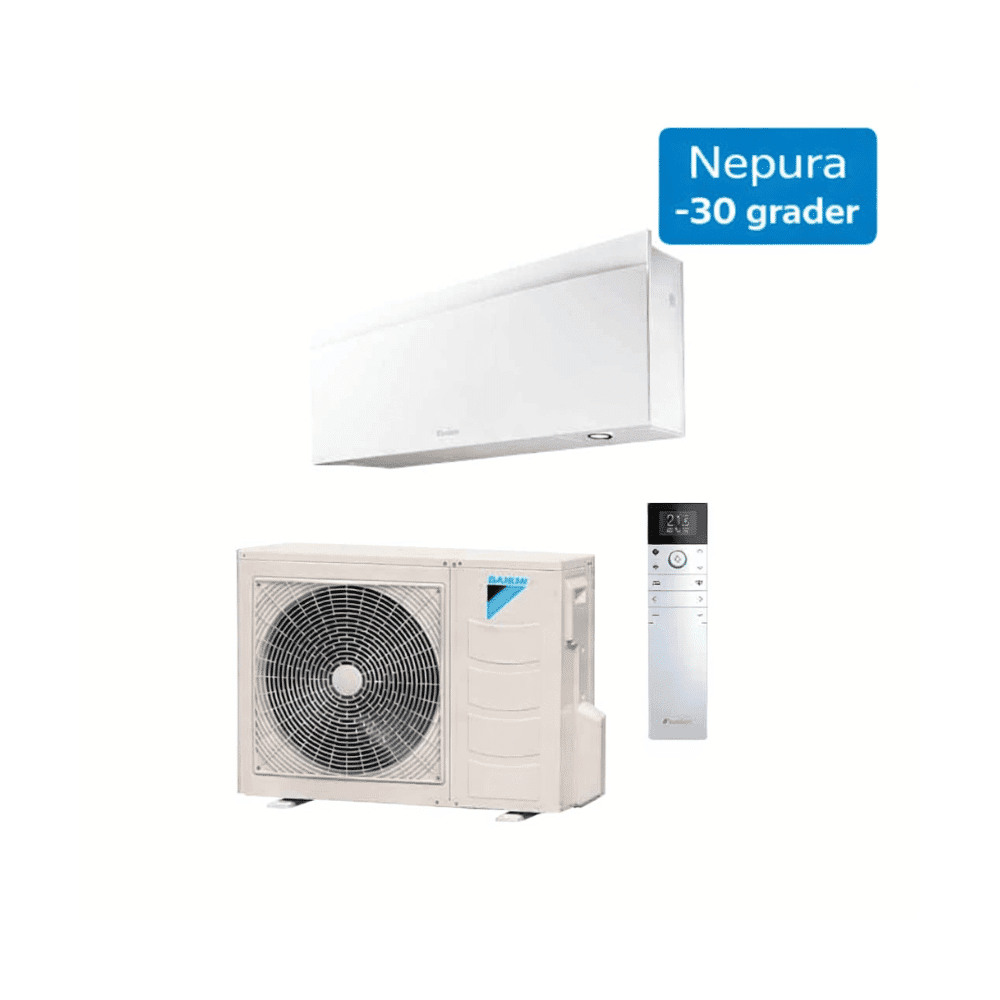Eksklusiv designvarmepumpe i absolut topklasse udviklet til det nordiske klima med drift helt ned til -30°C. Daikin Nepura Emura 30 kombinerer elegant design med høj varmeeffekt, lavt energiforbrug og avanceret teknologi, hvilket